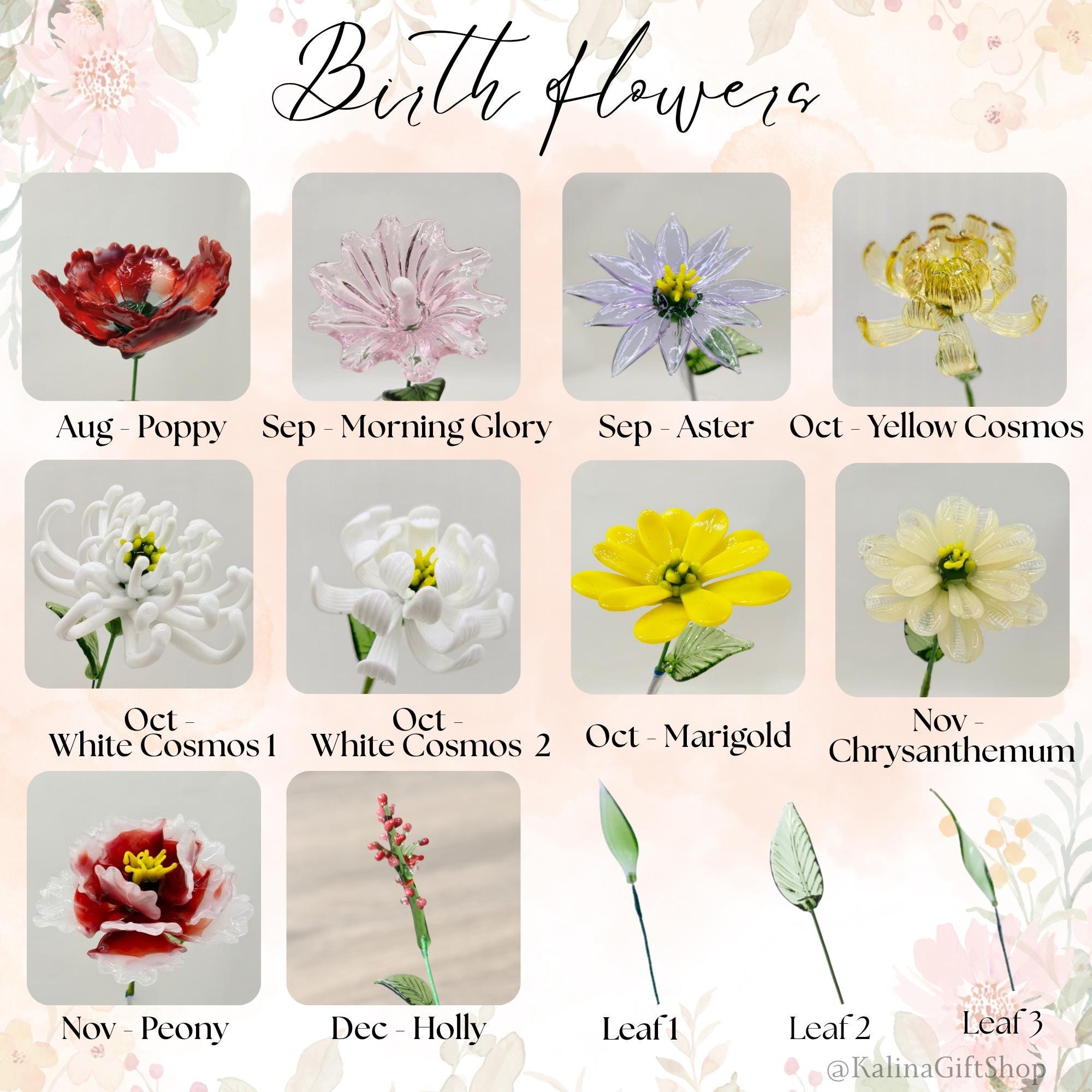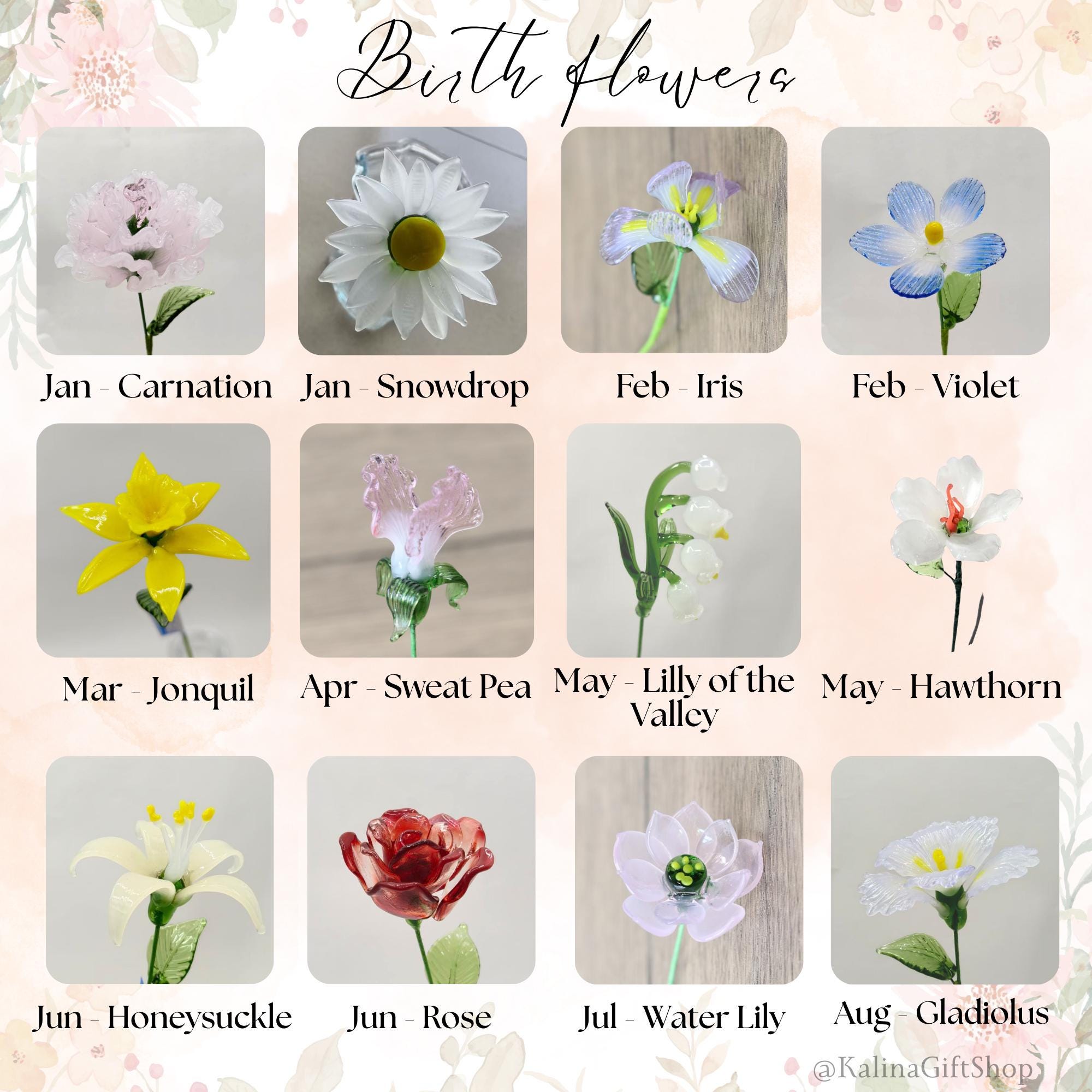 Hand Blown Glass Birth Flower: Fine Art Glass Floral Stem, Valentine’s Gift, Gift for Wife
